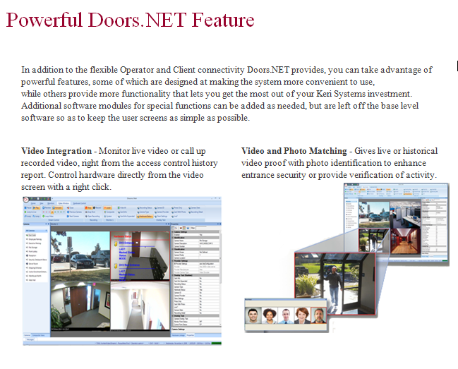 KeriSystems based in America now support integrated Camera, Lift Control, and many more feature